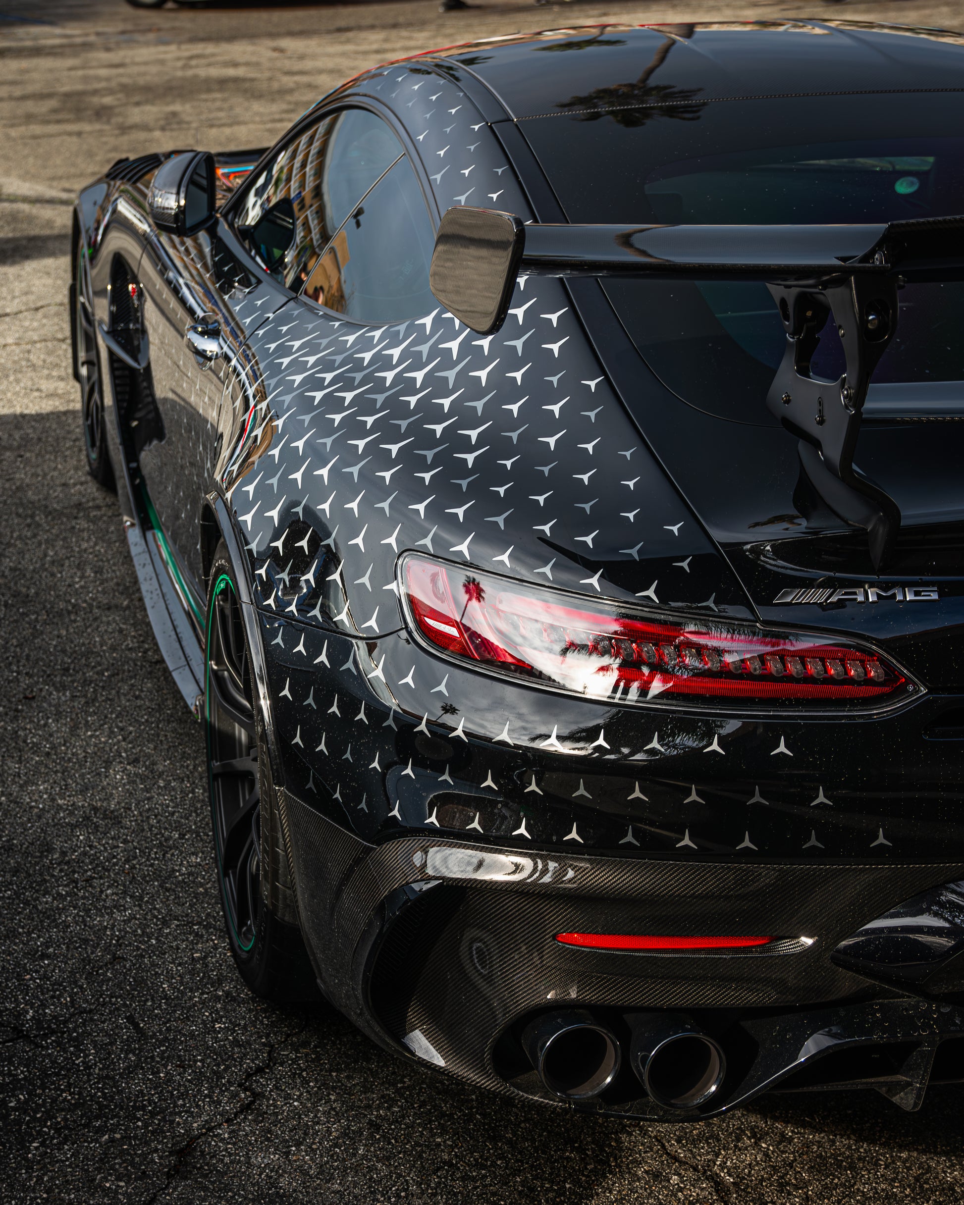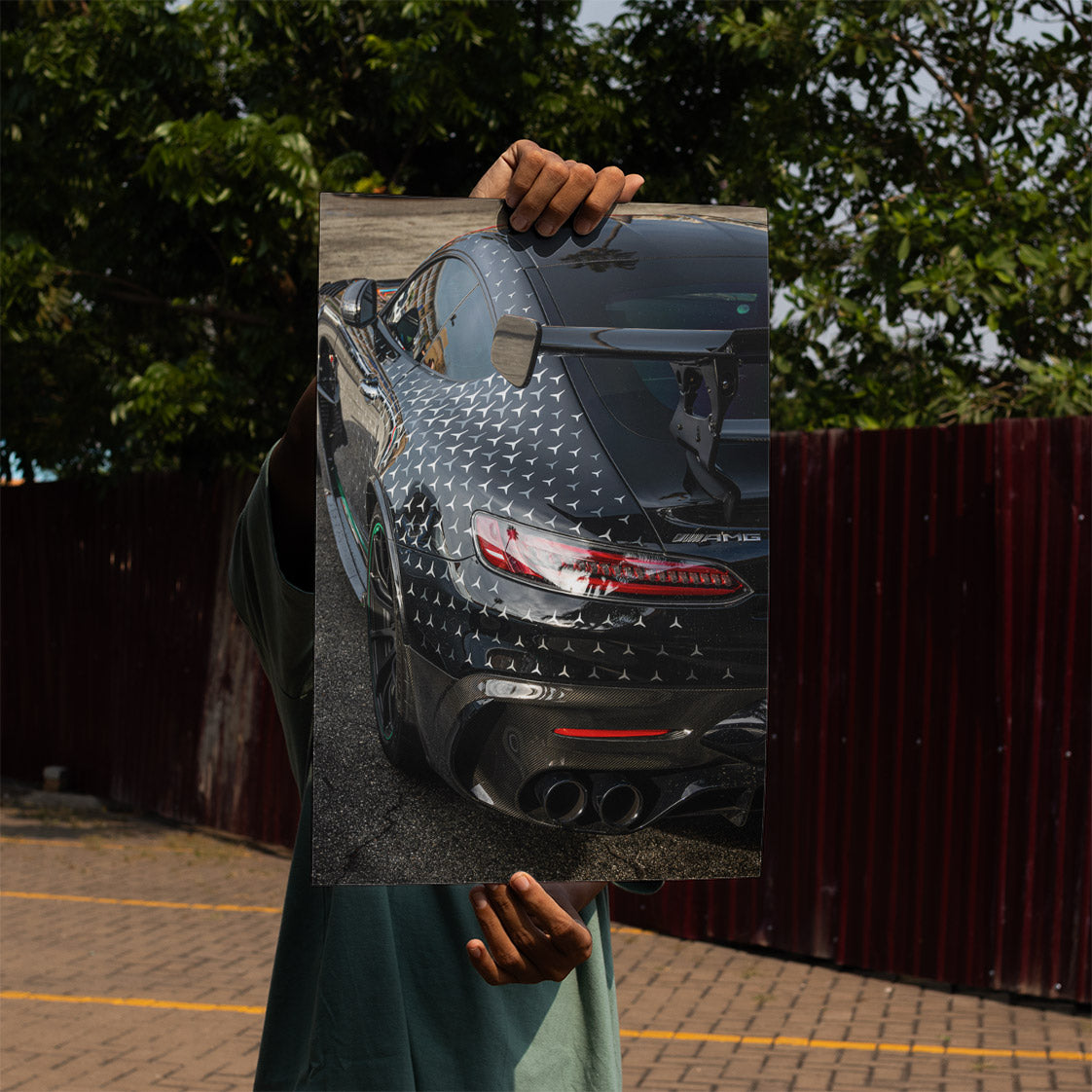 Immerse yourself in the raw power and precision of the Mercedes-AMG GT Black Series with this striking photograph by Leo Rikhtman, capturing every curve and aerodynamic detail in vivid clarity. Shot under natural light, the image showcases the car’s aggressive rear profile and distinctive livery, making it perfect for automotive enthusiasts and luxury performance art collectors.