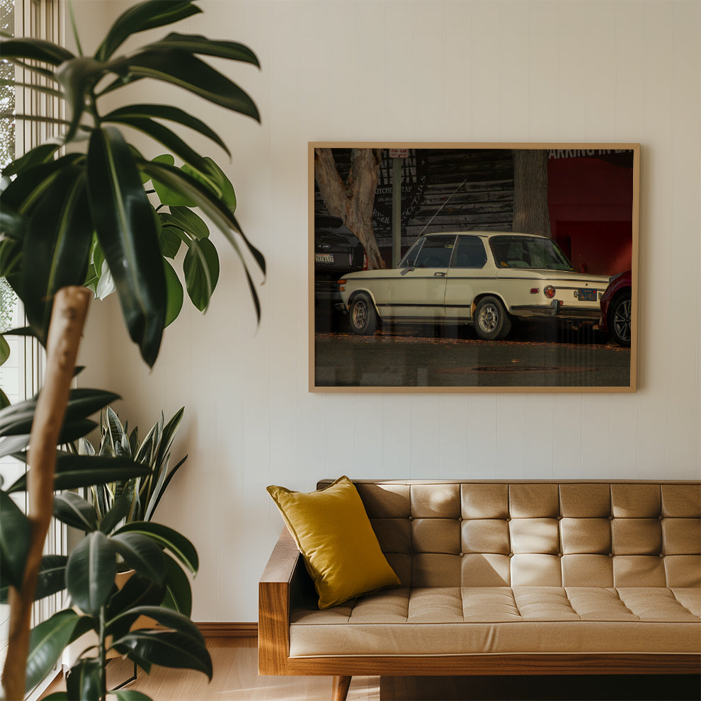 Capture timeless automotive charm with this BMW 2002 Street Scene Print by Leo Rikhtman, featuring a beautifully preserved vintage 2002 model parked against a textured urban backdrop in warm, natural light. This high-resolution photo blends nostalgia and precision, making it a perfect wall piece for classic car enthusiasts and photography lovers alike.